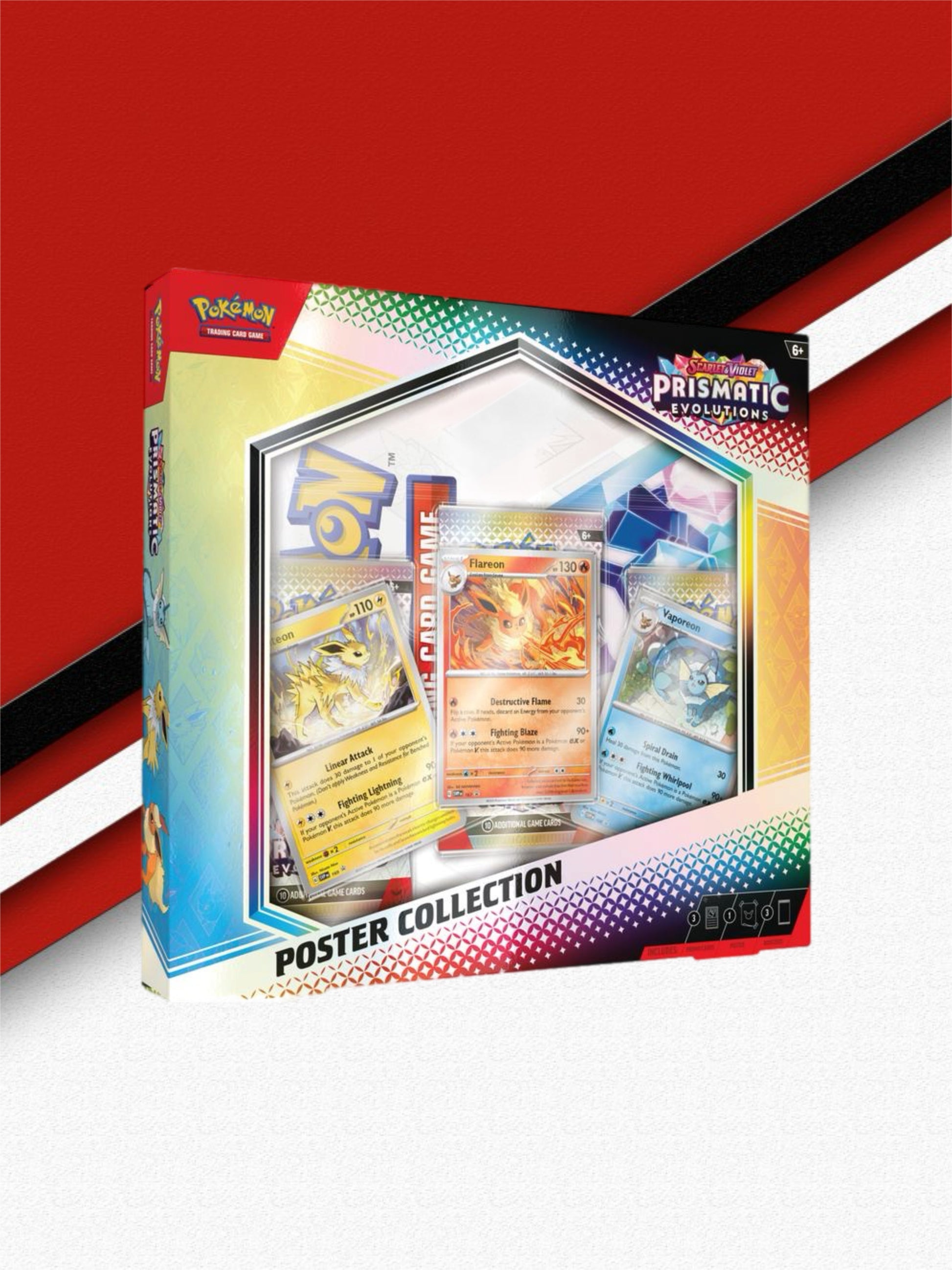 - You’ll also get a poster featuring the special Scarlet & Violet—Prismatic Evolutions expansion, along with three booster packs to open.